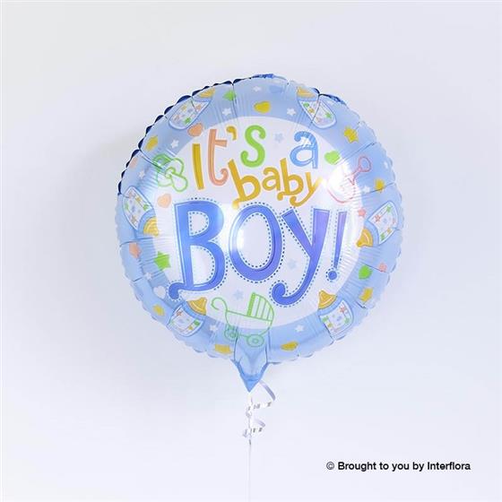 Add a sense of fun to the occasion with this cute baby boy balloon. The ‘baby boy’ blue and white design features a car motif and a sweet gingham style border. The 45cm micro-foil balloon arrives filled with helium and tied to a weight with curling ribbon.