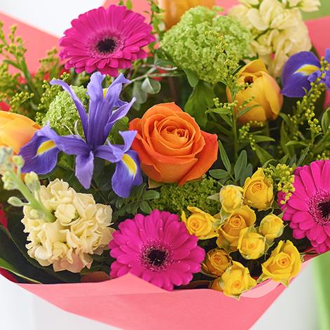 A vibrant spring bouquet made and delivered by a local florist.