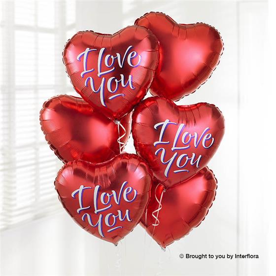 Make a big impression with this fabulous balloon bouquet created with six helium-filled balloons. Including three red heart-shaped balloons and three 'I love you' balloons, this is a great gift to show someone you care.